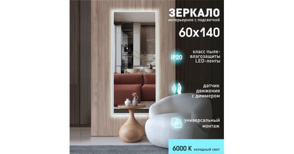 Зеркало с фоновой подсветкой и торцевым датчиком движения Sumatra clear 14060d2-6 (140х60 см) - холодный светколлекция «Islands»Зеркало с фоновой подсветкой «Sumatra» изготовлено из зеркального полотна толщиной 4мм, уровень пылевлагозащ..
