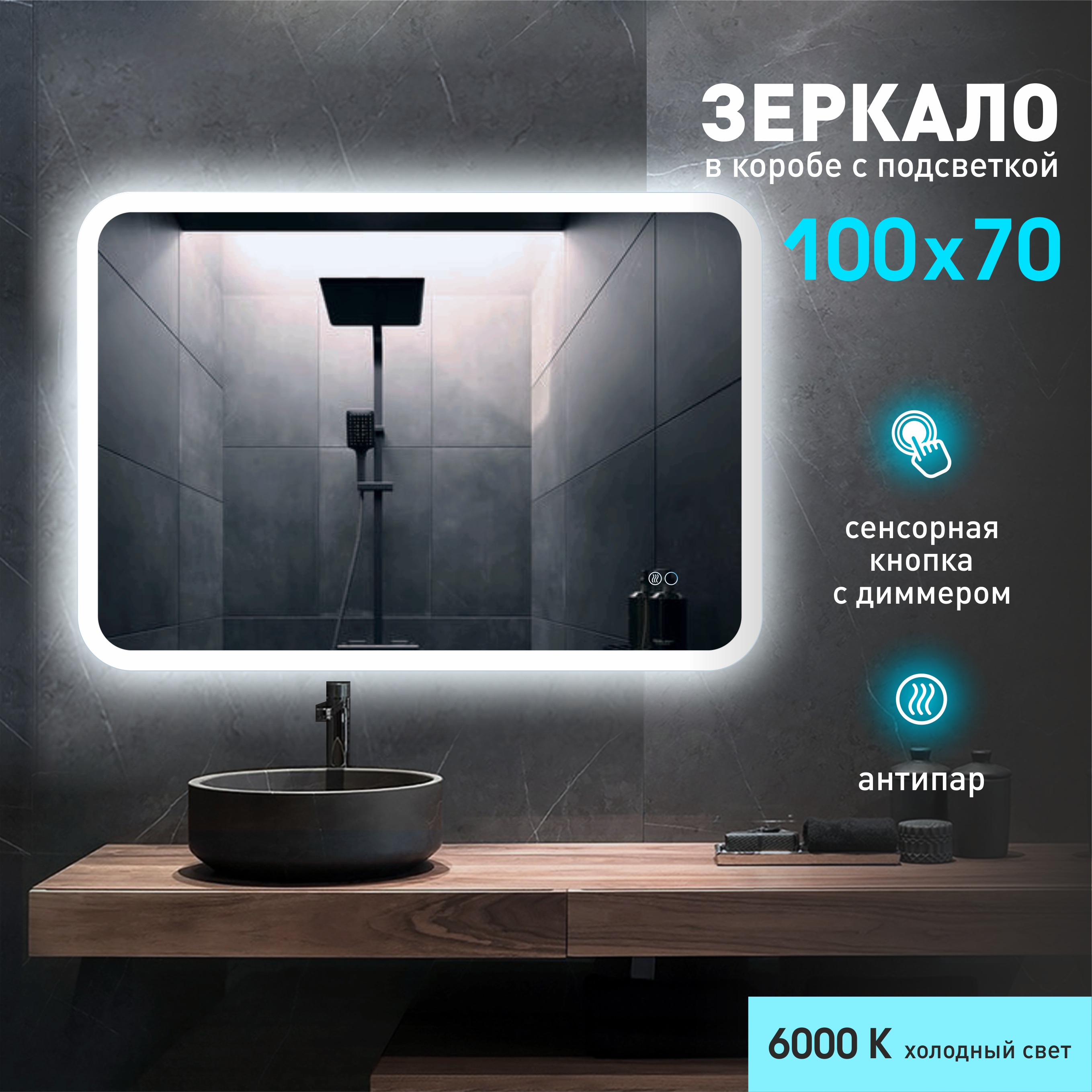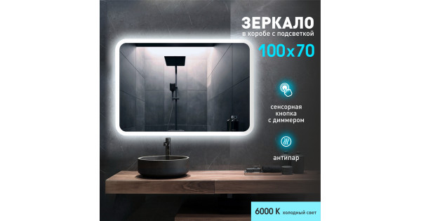 Зеркало с фоново-фронтальной подсветкой, с сенсорной кнопкой и подогревом Palmer 10070sh2-6 ( 100х70 см) в светопропускающем коробе- холодный светКоллекция "Travel" Зеркало с фоново-фронтальной подсветкой  «Palmer» представляет собой ..