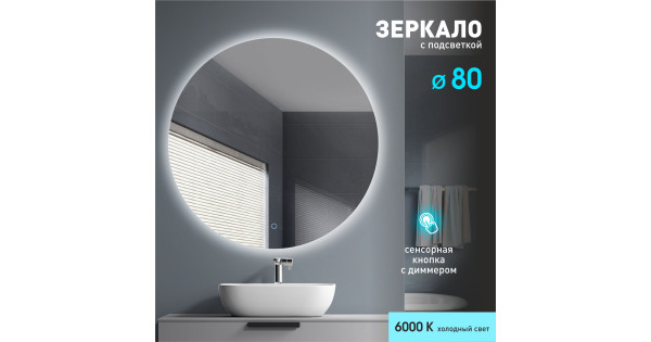 Зеркало с фоновой подсветкой и сенсорной кнопкой Tokyo 80s-6 (D 80 см) - холодный светколлекция «Travel»Led-зеркало с сенсорной кнопкой с диммером (регулировкой яркости света).Для включения зеркала достаточно дотронуться до сенсора. Для..