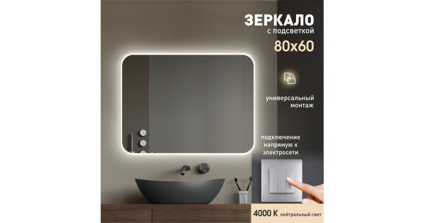 Зеркало с фоновой подсветкой Delhi 8060-4 (80х60 см) - нейтральный светколлекция «Travel»Led-зеркало без сенсорной кнопки – отличный вариант для тех, кому не нравится светящийся кружок на зеркале. Разработано специально для выведени..