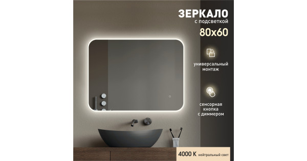 Зеркало с фоновой подсветкой, сенсорной кнопкой Delhi 8060s-4 (60x80 см)- нейтральный светколлекция «Travel»Led-зеркало с сенсорной кнопкой с диммером (регулировкой яркости света). Для включения зеркала достаточно дотронуться до сенсора. ..