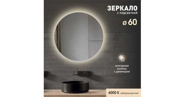 Зеркало с фоновой подсветкой и сенсорной кнопкой Tokyo 60s-4 (d 60 см) - нейтральный свет коллекция «Travel»Led-зеркало с сенсорной кнопкой с диммером (регулировкой яркости света). Для включения зеркала дос..