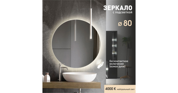 Зеркало с подсветкой, лицевым датчиком включения Tokyo 80d-4 (d 80 см) - нейтральный свет коллекция «Travel»Led-зеркало с лицевым датчиком движения (бесконтактное включение) и фоновой подсветкой. Для включения зеркала достаточн..