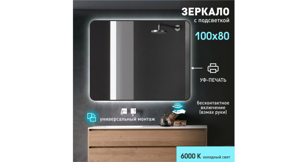 Зеркало с фронтально-фоновой подсветкой, c сенсорной кнопкой Mаnila 10080s-6 (80x100 см) - холодный светLed-зеркало "Mаnila" с сенсорной кнопкой с диммером (регулировкой яркости света). Для включения зеркала достаточно дотронуться до сенсора.&..