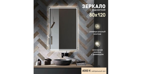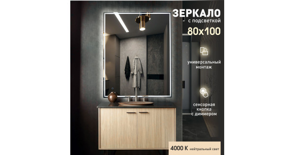 Зеркало с фронтально-фоновой подсветкой, c сенсорной кнопкой Darwin 80120s-4 (120*80 см) - нейтральный светколлекция "Travel" Led-зеркало "Darwin" с сенсорной кнопкой с диммером (регулировкой яркости света). Для включения зеркала достато..