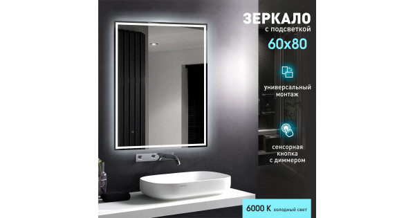 Зеркало с фронтально-фоновой подсветкой, c сенсорной кнопкой Darwin 8060s-6 (80*60 см) - холодный свет Led-зеркало "Darwin" с сенсорной кнопкой с диммером (регулировкой яркости света). Для включения зеркала достаточно дотронуться до сенсора.&n..