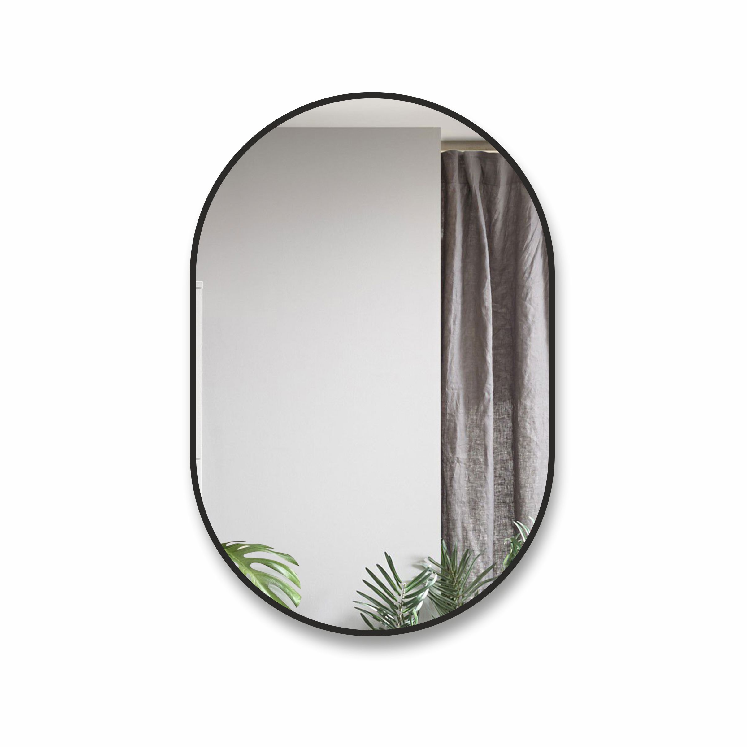 Зеркало Д-035 (120x60 см) с чёрной окантовкой (УФ-печать)серия "Д" Данная модель зеркала овальной формы в виде капсулы с чёрной окантовкой. Окантовка выполнена методом УФ-печати, ширина печатного рисунка 10 мм. Рисунок наносится на лице..