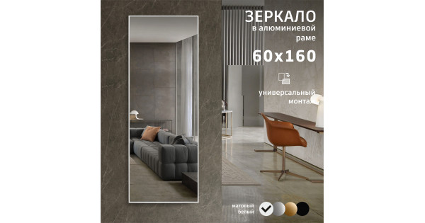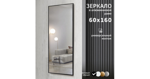 Зеркало Ма1nu-16060black (160х60 см) в алюминиевой раме/ чёрныйМинималистичный дизайн зеркала впишется в любой интерьер. Благодаря особому виду креплений, зеркало может быть установлено напольно, либо выполнять роль настенного. Рамы для зеркал изго..