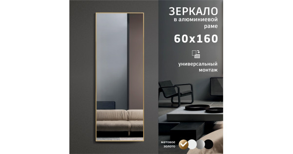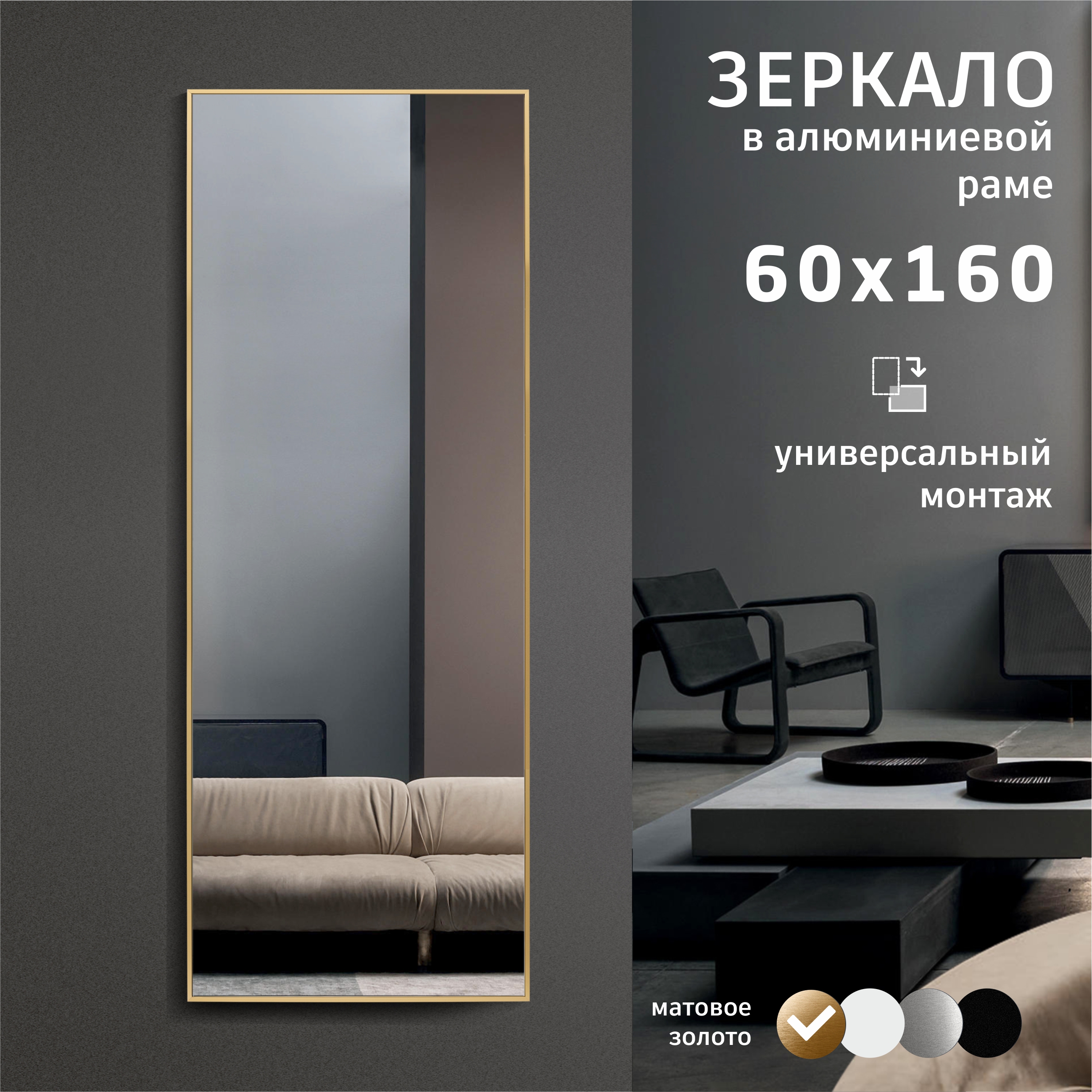 Зеркало Ма1nu-16060gold (160х60 см) в алюминиевой раме/ золотоМинималистичный дизайн зеркала впишется в любой интерьер. Благодаря особому виду креплений, зеркало может быть установлено напольно, либо выполнять роль настенного. Рамы для зеркал изгот..