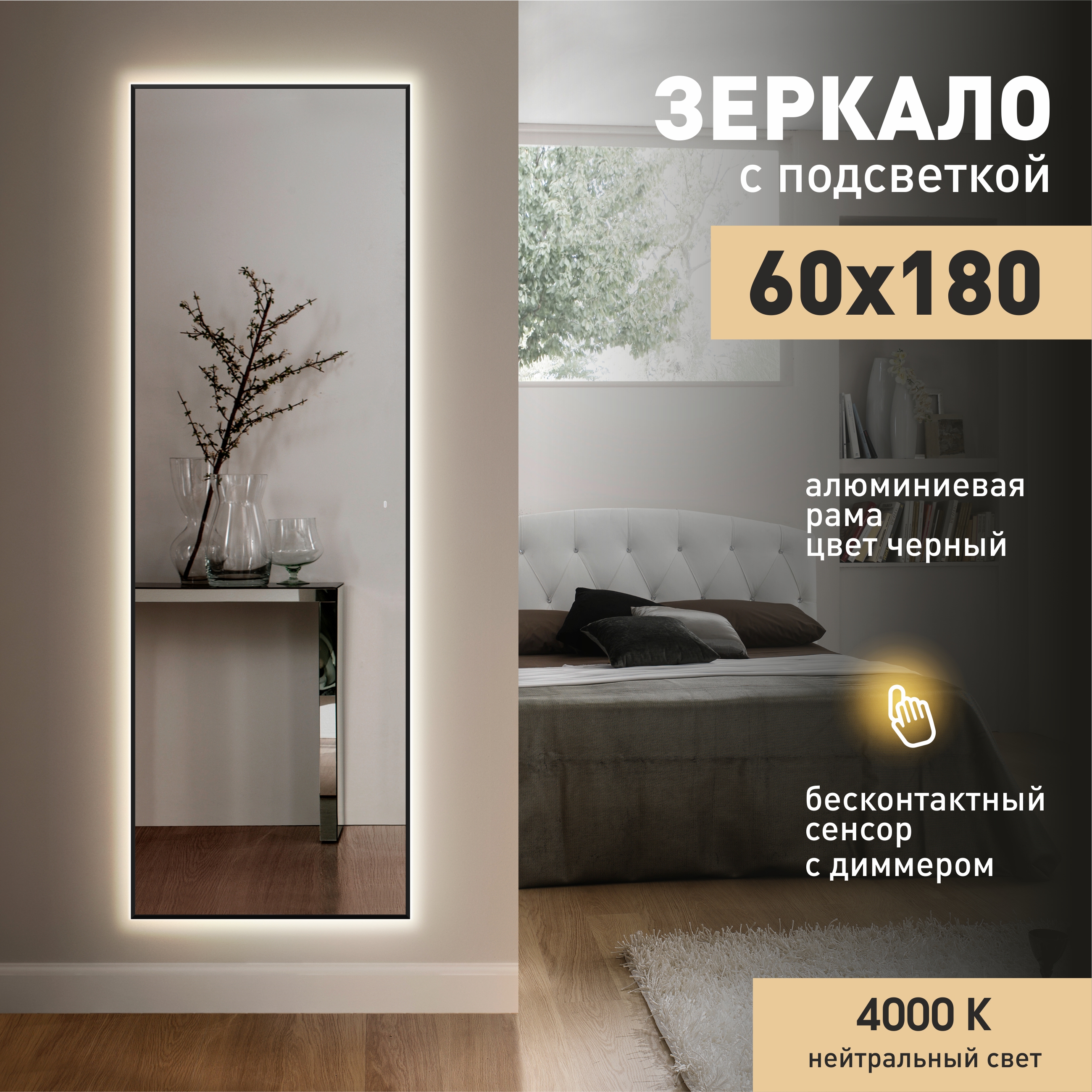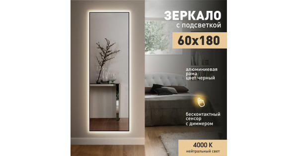 Зеркало с фоновой подсветкой, с лицевым датчиком движения в алюминиевой раме ЗП-163 (180x60 см) – нейтральный светколлекция «ЗП»Led-зеркало ЗП-163 с лицевым датчиком движения (бесконтактное включение) в чёрной алюминиевой раме. Для включения зеркал..