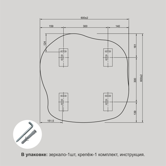 | А-062 | 600 *600 мм зеркало с фигурной шлифованной кромкой |