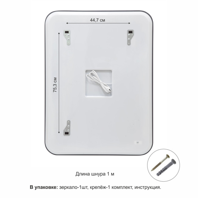 | шнур с вилкой | есть (для проверки корректной работы зеркала) |