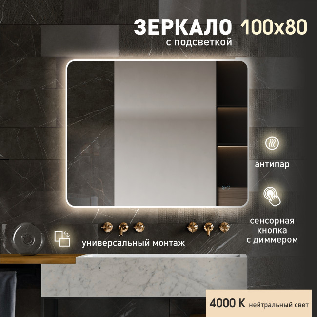 Описание Зеркало с фоново-фронтальной подсветкой, с сенсорной кнопкой и подогревом Milan 10080sh-4 (100х80см) - нейтральный свет
