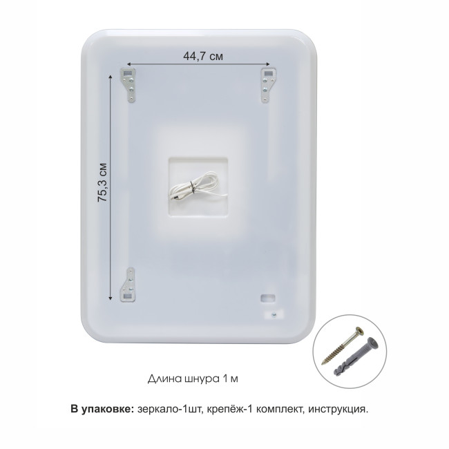 | шнур с вилкой | есть (для проверки корректной работы зеркала) |