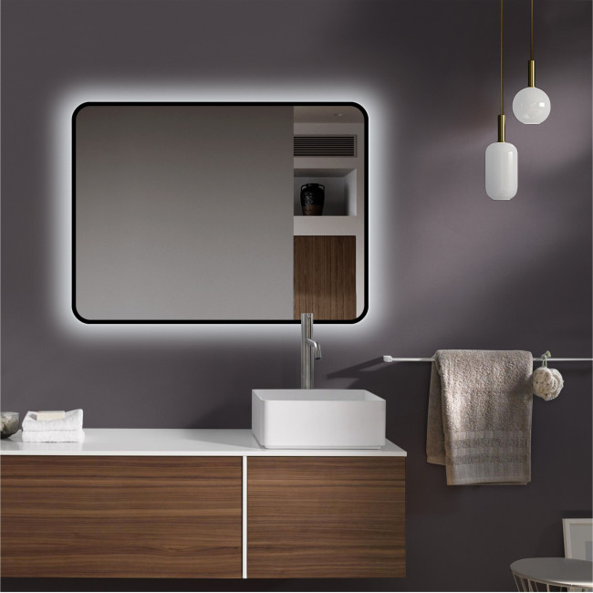 Зеркало с фоновой подсветкой, с торцевым датчиком движения и чёрной УФ-окантовкой Hanoi black 8060d2-6 (80x60 см) – холодный свет