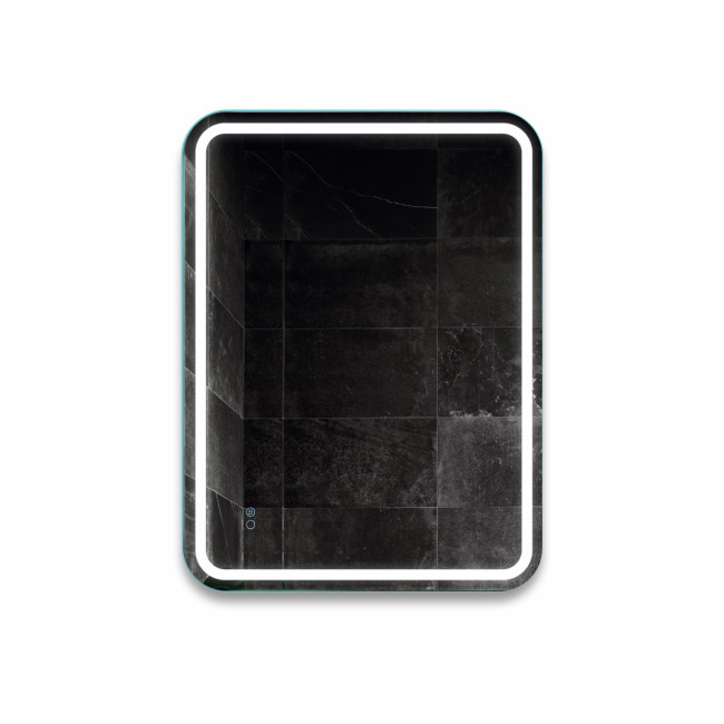 Зеркало с фронтально-фоновой подсветкой, сенсорной кнопкой и подогревом Bissau 8060sh-6 (60x80 см) – прозрачный короб/холодный свет.