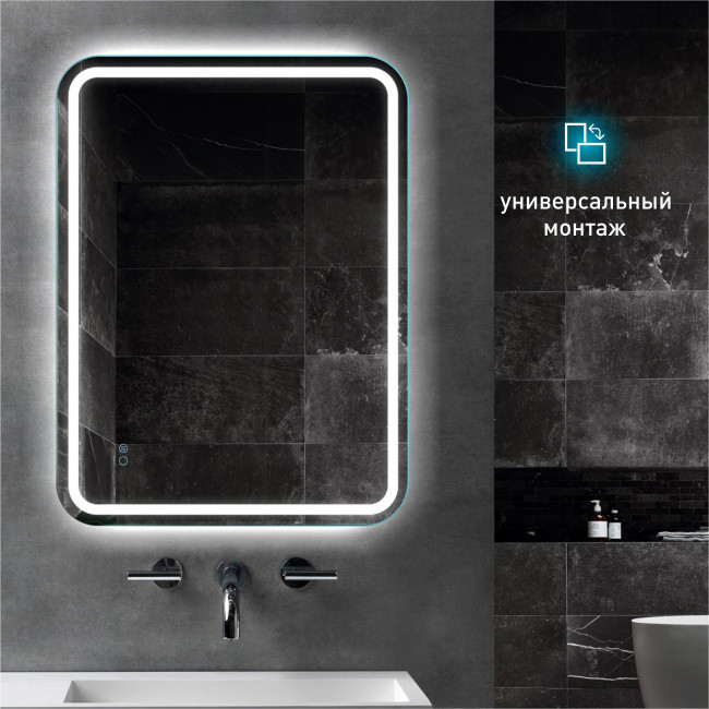 Описание Зеркало с фоново-фронтальной подсветкой, сенсорной кнопкой и подогревом Bissau 8060sh-6 (60x80 см) – светопропускающий короб/холодный свет