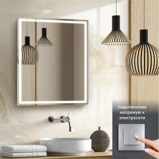 Зеркало "Dallas" без сенсорной кнопки разработано специально для выведения к электросети под клавишу вкл/выкл света. Подсветка будет включаться непосредственно при включении света. Фронтальная (передняя) подсветка имеет не только декоративную, но и функциональную роль - лицо смотрящего в зеркало человека освещается ярче. Способность такого зеркала обеспечивать правильное освещение делает такие зеркала незаменимыми помощниками при нанесении макияжа и при бритье.