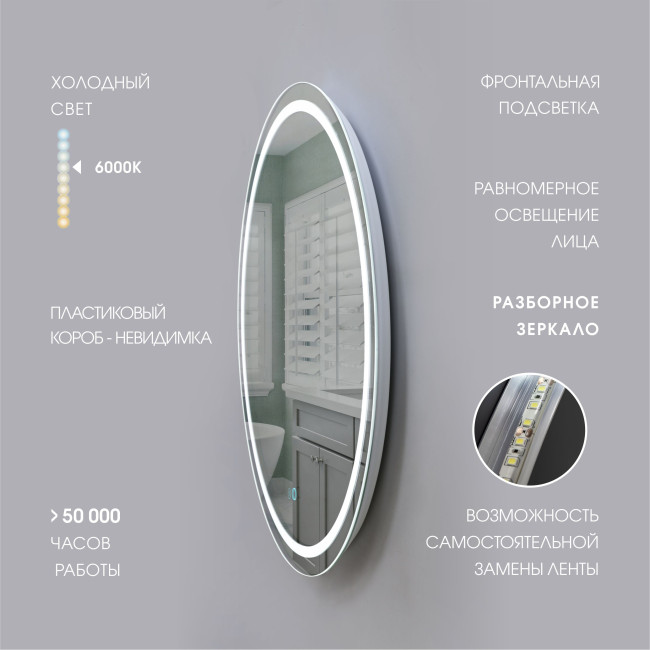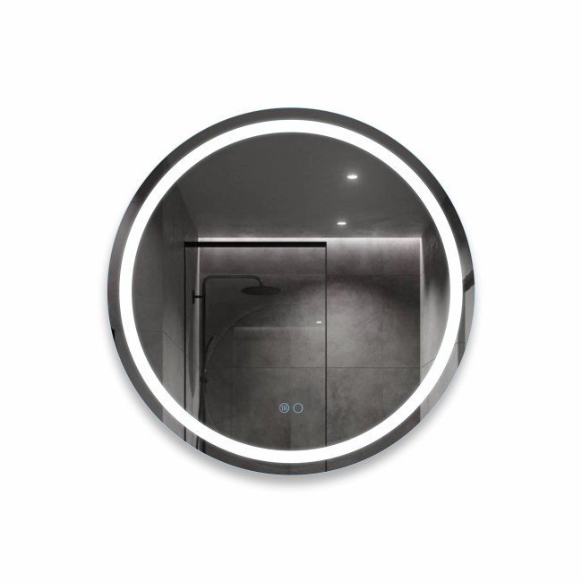 Описание Зеркало с фронтальной подсветкой, с сенсорной кнопкой и подогревом Boston 60sh-6 (D 60 см) в сетонепропускающем коробе/холодный свет