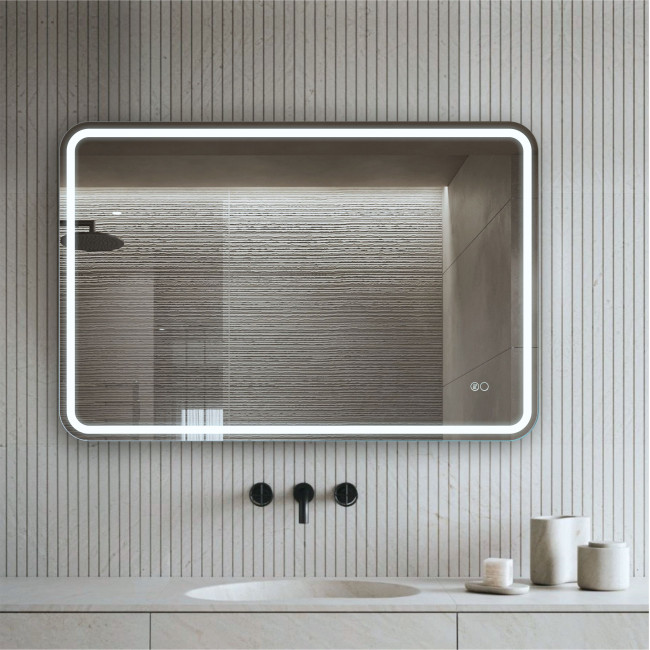 Зеркало с фронтальной подсветкой, с сенсорной кнопкой и подогревом Lima 12080sh2-6 (120х80 см) в светонепропускающем коробе/холодный свет