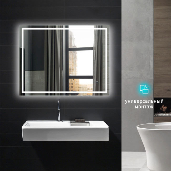 Описание Зеркало с фоново-фронтальной подсветкой, c сенсорной кнопкой Dakar 9070s-6 (90x70 см) в светопропускающем коробе/холодный свет