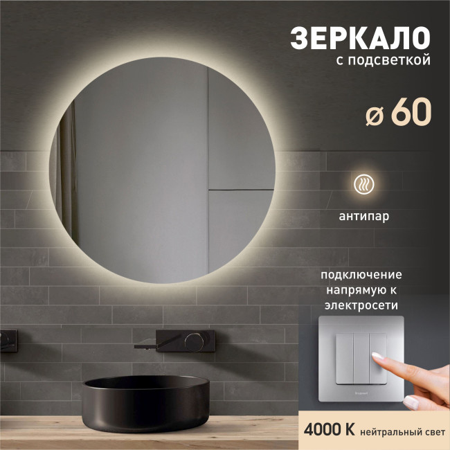 Зеркало с фоновой подсветкой и подогревом Tokyo 60h-4 (D 60 см) - нейтральный свет