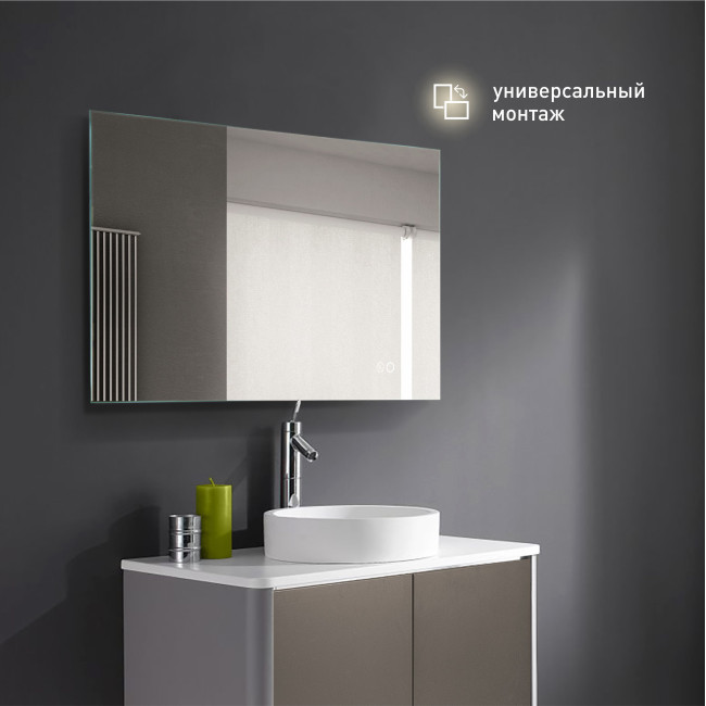 Led-зеркало с двойной сенсорной кнопкой. Одна кнопка - для включения подсветки. Она имеет диммер для регулировки яркости света. Для включения зеркала достаточно дотронуться до сенсора. Для изменения яркости света подержите палец на сенсорной кнопке. Благодаря функции памяти кнопки, все последующие включения будут на последнем уровне яркости. Вторая кнопка включает подогрев, осуществляющий функцию антизапотевания. «Антипар» работает благодаря мату подогрева размером 285х225 мм, смонтированному по центру с обратной стороны зеркала.
